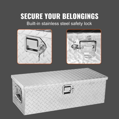 Last A Lifetime: VEVOR truck tool box is constructed from lightweight yet durable aluminum alloy, featuring a diamond tread pattern and double-sided power coating process. This design helps to prevent rust, corrosion, and abrasion, ensuring long-lasting use for several years. Additionally, the tool box is equipped with upgraded corners to secure the packaging and prevent any damage or deformation during transportation.