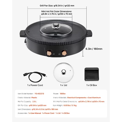 Hot Pot & Grill: 1800W high power for rapid heating. Enjoy quick and continuous heating with our versatile hot pot with grill. Ideal for hot pot, grilling, and more, catering to a variety of flavors. Time-saving and efficient