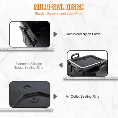 Non-Electric Insulation: Crafted with an LL9450UP surface and a 1.18 in (30 mm) PU foam layer, our hot and cold beverage dispenser is your go-to for exceptional insulation. It keeps your drinks at the ideal temperature for over 10 hours without requiring electricity or any external power source. The two integrated nylon latches securely tighten the lid, locking in the desired internal temperature.