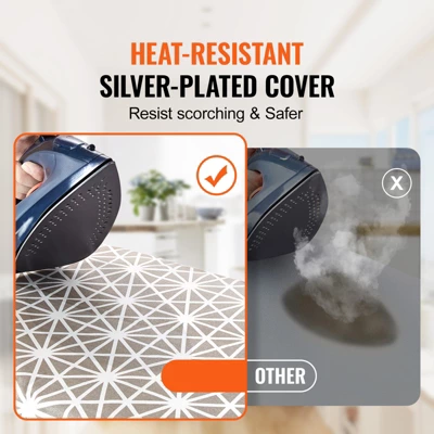 Heat-Resistant Cover: Our full size ironing board comes with a heat-resistant silver-plated cover for safer and resist scorching. This newly developed fabric adopts silver-plated process, allow a hot iron to sit on the surface without any damage or scorching, making your ironing process safer.