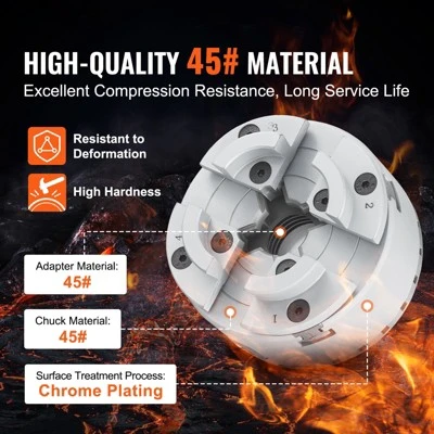 High-Strength #45 Material: To meet the demanding requirements of production environments, we have utilized #45 material that has undergone quenching and tempering techniques. This process imparts exceptional hardness and rust-resistant properties. Whether it’s for small-scale or large-scale workpieces, this lathe chuck delivers outstanding performance and reliability.