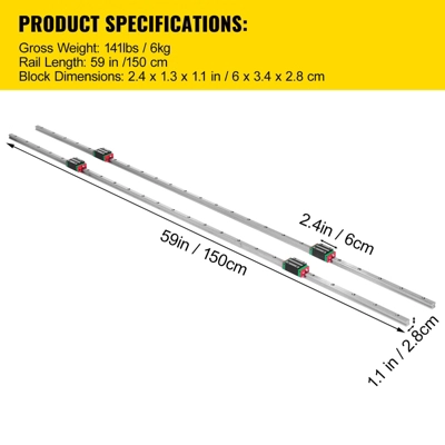 HSR15-1500 mm Linear Guide Rail: This linear guide rail set includes one piece of 1500 mm/59″ long HSR15 rail shafts and 4 bearing blocks with smooth sliding.