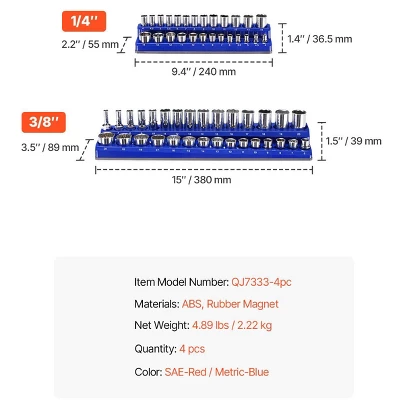 High Compatibility: Designed to be compatible with multiple socket brands, our 4PCS magnetic socket organizer set holds up to 108pcs metric and SAE standard & deep sockets., simplifying sockets management, keeping the workspace clean and ensuring you won’t lose any sockets. (Note: Sockets are not included.)