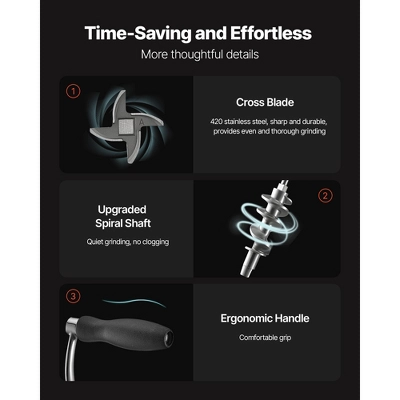 Easy to Clean: The detachable design allows all meat grinder parts to be cleaned in the dishwasher, making cleanup a breeze. After use, simply wipe dry and store for a tidy kitchen. Tip: Regularly apply edible oil to the blade to keep it sharp