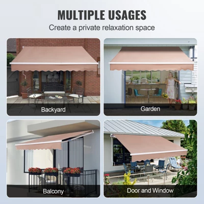Sunshade for Rain or Shine: Tired of scorching summers? Our 12×10 ft patio awning retractable has you covered. With a 280g polyester canopy and a waterproof PU coating, featuring a UV80+ rating, it shields you from UV rays and keeps you dry. It boasts colorfastness, durability, and is perfect for relaxing in your yard.