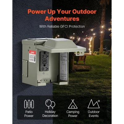 GFCI Protection for Outdoor Use: Ideal for temporary outdoor power needs—whether you’re decorating your yard, setting up for Halloween, or powering up at the campsite—our temporary power outlet panel offers a convenient and reliable solution for all your electricity requirements.