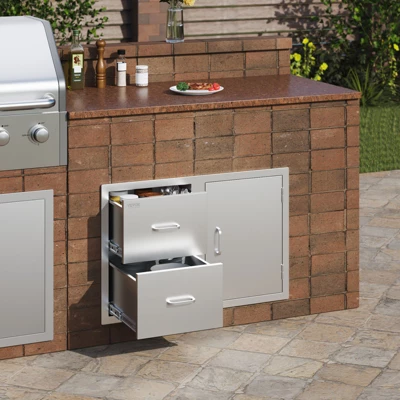 Wide Application: The outdoor storage drawers are perfect for outdoor and indoor kitchens, especially BBQ islands, it can store most kitchen utensils, like dishes, forks, and spoons. Besides, it can be used in any weather condition, even windy or rainy days.