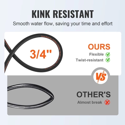 Kink-resistant Water Hose: The hose has a bend radius of 4.9 inches, making it easy to stretch, roll up, and carry. Its high flexibility eliminates the need to frequently loosen the hose to restore water flow, allowing for more efficient cleaning without interruptions.
