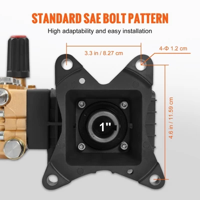 Wide Compatibility: Designed with a standard SAE bolt pattern, our parts washer pump is compatible with various gas pressure washers with horizontal engines, including Simpson MorFlex models 40224, 40225, 40226, and Santoprene model 41182. To ensure compatibility, be sure to match engine orientation, PSI, GPM, engine shaft diameter, and current pump inlet and outlet connection.