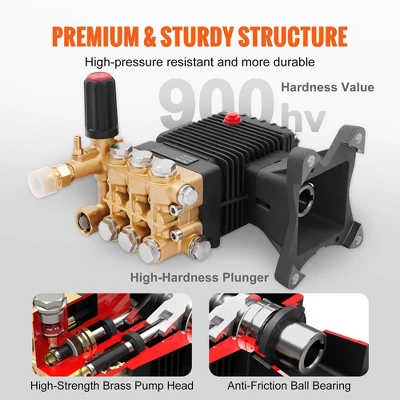 High-Pressure Resistant Structure: Say goodbye to impurities damaging your plunger! Our power washer pump strengthens plunger hardness to improve wear resistance and prolong the life of water/oil seals. The one-piece pump head made of forged brass material offers a better sealing effect, high strength, and increased durability.