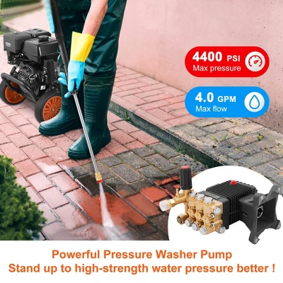 Pressure Washer Pump, 4400 PSI, 4.0 GPM, 1″ Shaft Horizontal Triplex Plunger, Replacement Power Washer Pumps Kit, Parts Washer Pump, Compatible with Simpson, Honda, Homelite, Troybilt etc.