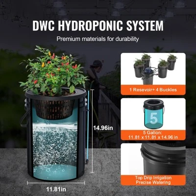 Durable & Corrosion-proof Material: Our 5-gallon RDWC hydroponic grow system features PP planting buckets that are sturdy, durable, corrosion-proof, and temperature-resistant. Perfect for long-term use without deformation, ideal for plant hydroponics.