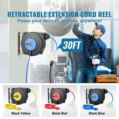 Heavy Duty 30FT Cord Reel: Ready for any challenge, our 16AWG/3C SJTOW cables are built to resist water, oil, acid, alkali, and ozone. Our retractable extension cord reel features a high-quality PP case, 30 ft extension cord, and 4.5 ft lead-in cord, rated for 10A / 125V / 1250W. Power up and reach further than ever! Choose from 4 vibrant colors to match your style!
