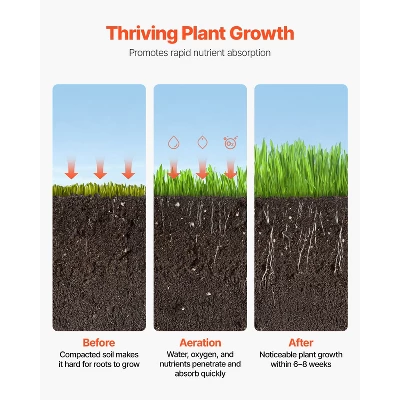Promotes Plant Growth: This manual rolling aerator lawn improves soil structure by creating holes that deliver more water and oxygen to plants, avoiding yellowing or decay caused by oxygen and water deficiency. Within 6-8 weeks, you’ll see noticeable growth in your plants.