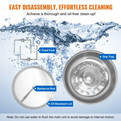 Detachable for Easy Cleaning: Our gshawarma grill machine is designed with your convenience in mind. Apart from the main unit, you can easily disassemble the oil shield, drip tray, and barbecue rod to make it a breeze to rid these components of any food residues and unwanted odors. Continue to deliver mouthwatering results every time you fire it up!