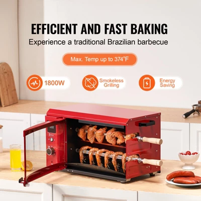 Efficient Cooking: The electric Brazilian shawarma machine replicates the traditional Brazilian barbecue experience by quickly converting electricity into heat. With a maximum temperature of 410°F / 210℃ and no need for preheating, it allows for fast and efficient cooking, perfect for various family gatherings.