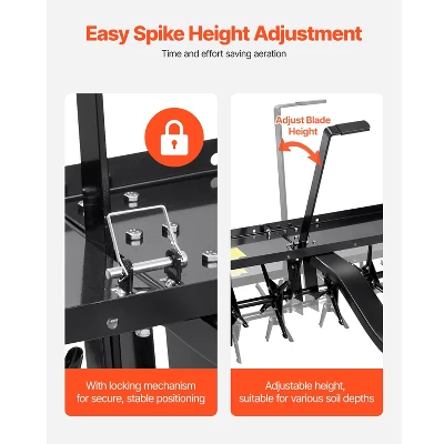 Adjustable Height: You can adjust the tray height using the lawn aerator’s lift handle to achieve the ideal penetration depth or suit different soil heights. The locking mechanism ensures the position stays secure, avoiding any accidental detachment or loosening during use.