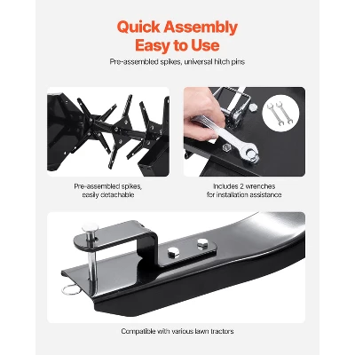 Quick Installation: Our lawn aerator tow behind comes with pre-installed spikes and includes 2 wrenches for easy setup. You can start using it right away upon delivery. The package also includes a detailed manual for clear instructions and security tips.