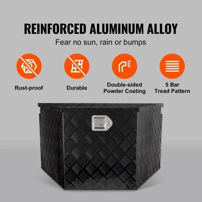 Sturdy and Lightweight: Our trailer tongue box utilizes thickened aluminum alloy material. Its surface is enhanced with 5-bar patterns and a double-sided dusting process, ensuring excellent rust and wear resistance. Features a robust yet lightweight design, the trailer tool box adds no extra weight burden to the trailer. Plus, we provide a range of sizes to choose from, suitable for various flat trailer and RV models.