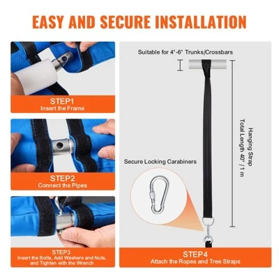 - Includes tree straps and carabiners for simple and secure setup.