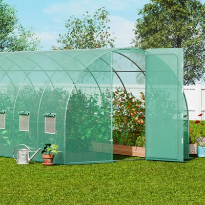 Spacious Walk-In Design: With a generous 27.38×9.51×7.38 ft space, this walk-in greenhouse tunnel is ideal for a variety of plant needs. It allows easy access for management and maintenance, and provides room for multiple plant shelves, making it suitable for both home and commercial gardening.