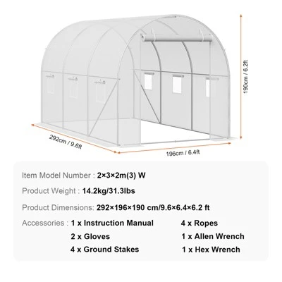 Spacious Walk-In Design: With a roomy 9.58×6.43×6.23 ft space, this walk-in greenhouse tunnel accommodates a variety of plants. Easily access and maintain your plants, or set up multiple plant shelves to meet both home gardening and commercial planting needs.