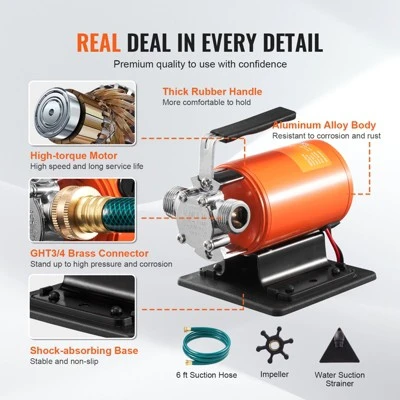 Stand Up to Wear & Corrosion: Crafted from sturdy aluminum alloy, our transfer water pump is wear-resistant, lightweight, and built to last. You can carry it anywhere with a portable handle. An electrostatic spray finish makes it smooth, delicate, and resistant to stains and corrosion.